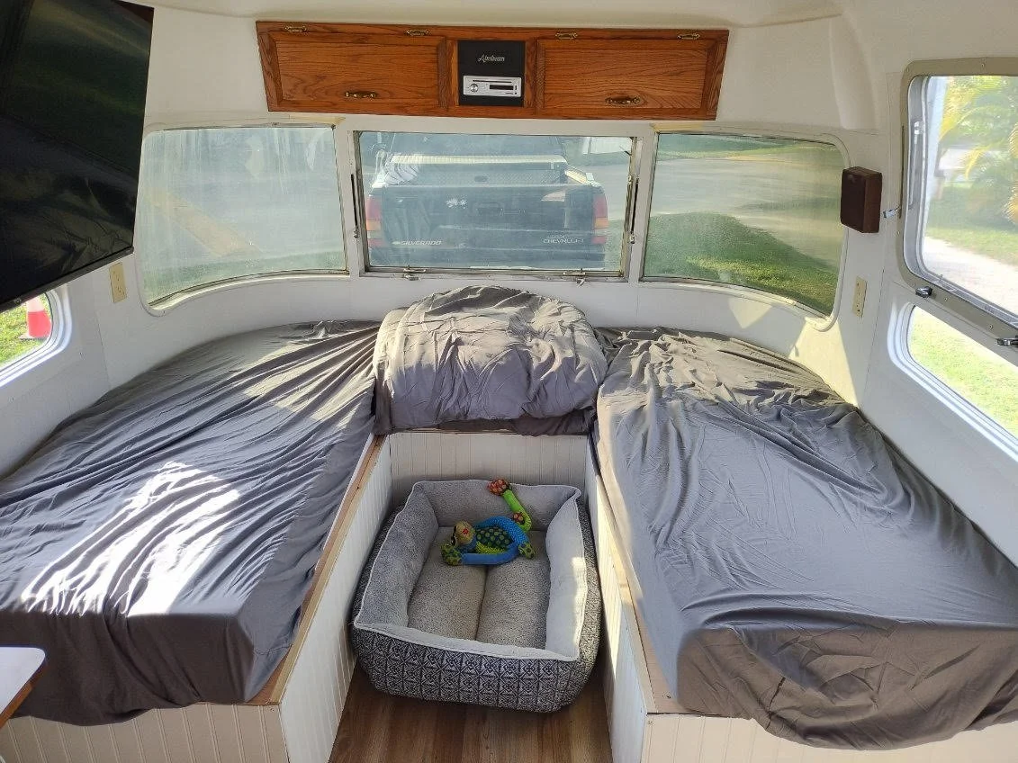 We rebuilt or replaced everything. These fully restored trailers each feature bathrooms, kitchens, bedrooms with queen-sized beds, and two couches that convert to additional beds. By Fall of 2024, they will be hooked up to power, water, septic, and WiFi - and they’ll be available for you to rent and enjoy.